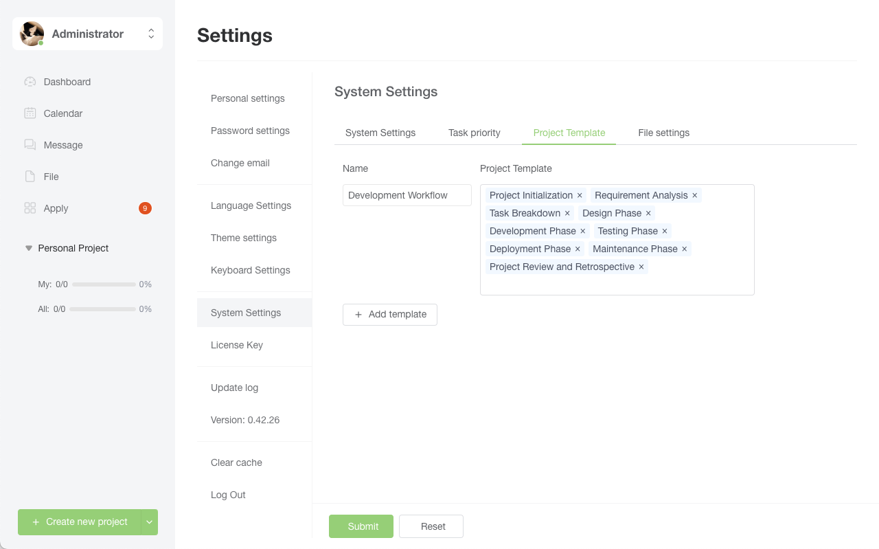 - Enter the "Project Templates" page to customize project template names and template tags, facilitating quick project creation.