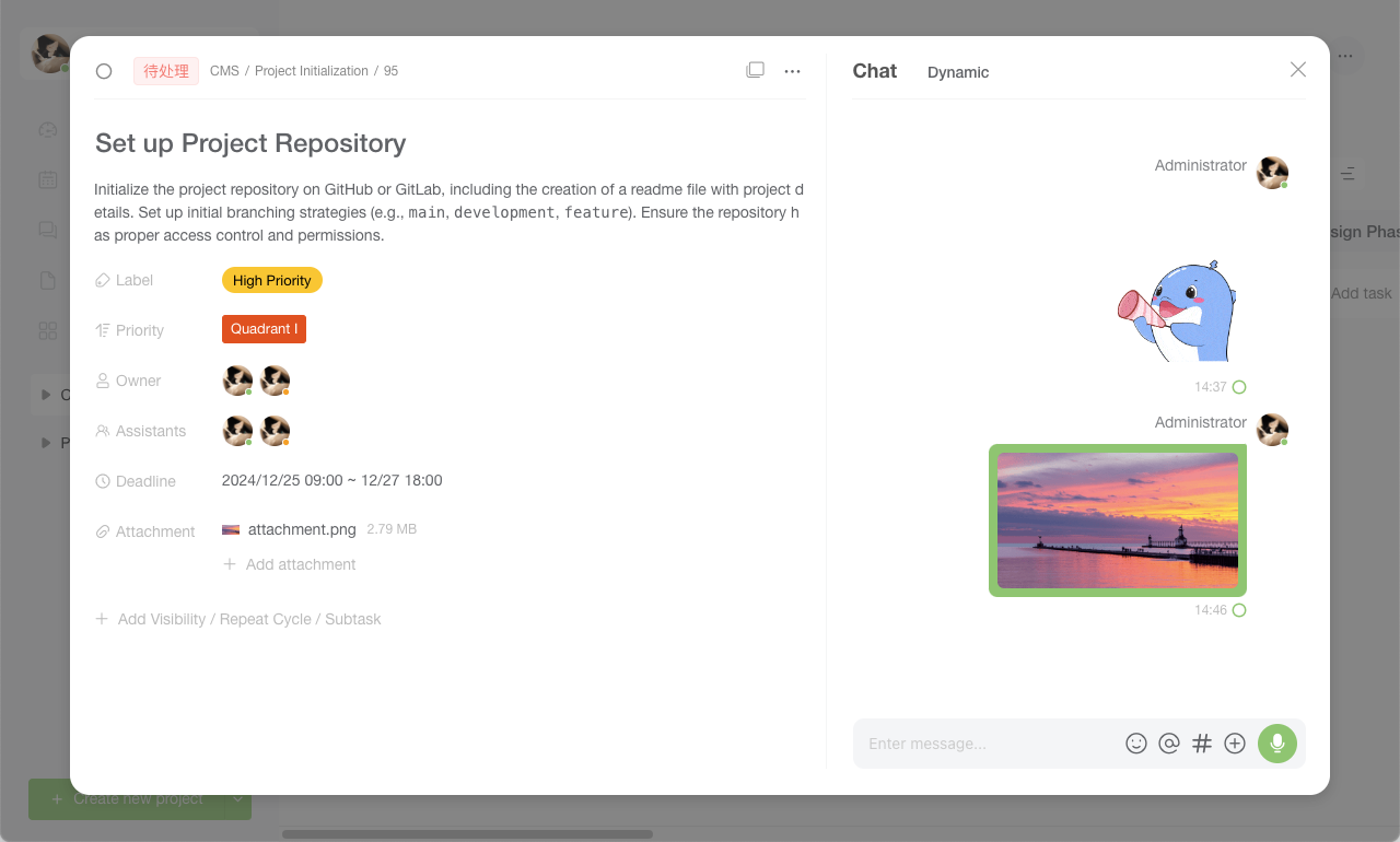 Communicate in real-time with team members on the task details page, record discussions, and improve collaboration efficiency.