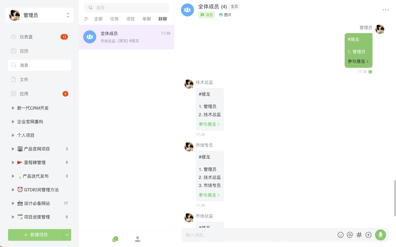 - 需要集中收集成员资源或信息时,群接龙可以快速记录成员的反馈。